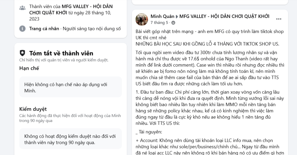 Bài viết góp nhặt trên mạng – anh em MFG có quy trình làm tiktok shop UK thì cmt nhé