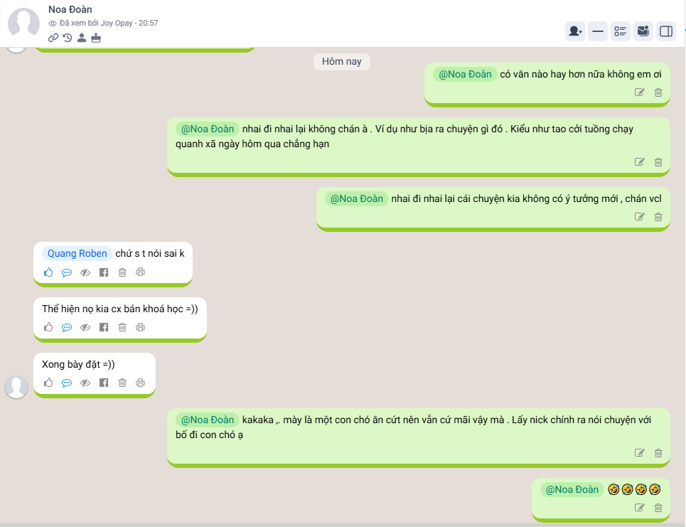 Tao lấy nick chính của tao chửi cả lũ chúng mày như những con chó luôn . Thế mà không một thằng nào dám lấy cái nick chính để vào mà nói 1 câu . Toàn dùng clone sủa trong vô vọng như bọn thần kinh .