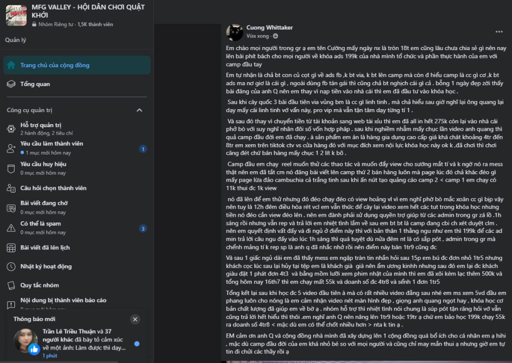 Em chào mọi người trong gr ạ em tên Cường mấy ngày nx là tròn 18t em cũng lâu chưa chia sẻ gì nên nay lên bài phít bách cho mọi người về khóa ads 199k của nhà mình tổ chức và phần thực hành của em với camp đầu tay