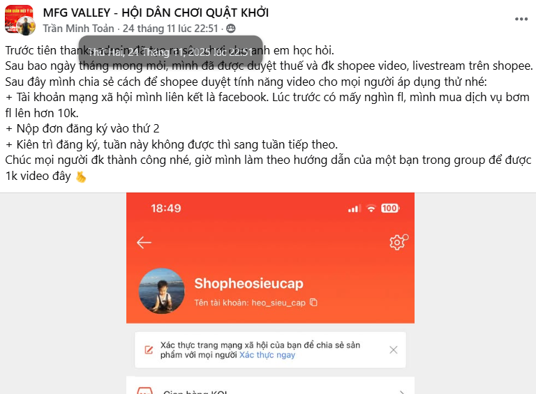 Sau bao ngày tháng mong mỏi, mình đã được duyệt thuế và đk shopee video, livestream trên shopee.