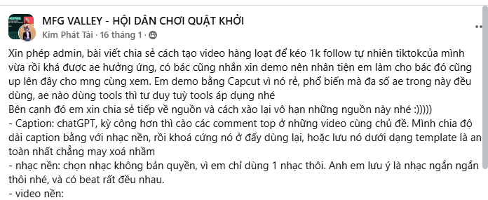 Xin phép admin, bài viết chia sẻ cách tạo video hàng loạt để kéo 1k follow tự nhiên tiktokcủa mình vừa rồi khá được ae hưởng ứng, có bác cũng nhắn xin demo nên nhân tiện em làm cho bác đó cũng up lên đây cho mng cùng xem. Em demo bằng Capcut vì nó rẻ, phổ biến mà đa số ae trong này đều dùng, ae nào dùng tools thì tư duy tuỳ tools áp dụng nhé