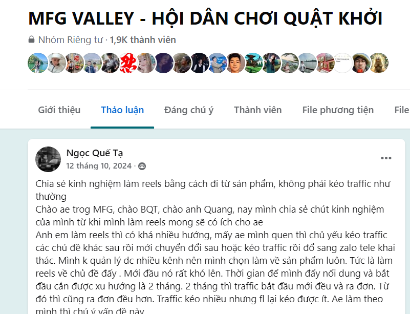 Chào ae trog MFG, chào BQT, chào anh Quang, nay mình chia sẻ chút kinh nghiệm của mình từ khi mình làm reels mong sẽ có ích cho ae