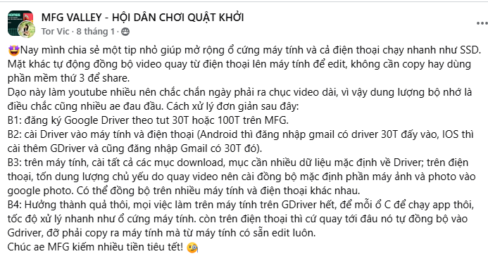Nay mình chia sẻ một tip nhỏ giúp mở rộng ổ cứng máy tính và cả điện thoại chạy nhanh như SSD. Mặt khác tự động đồng bộ video quay từ điện thoại lên máy tính để edit, không cần copy hay dùng phần mềm thứ 3 để share.
