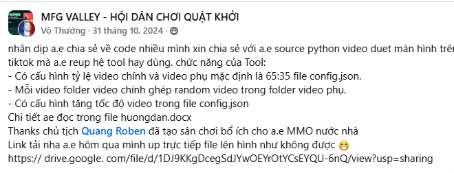 nhân dịp a.e chia sẻ về code nhiều mình xin chia sẻ với a.e source python video duet màn hình trên tiktok mà a.e reup hệ tool hay dùng. chức năng của Tool: