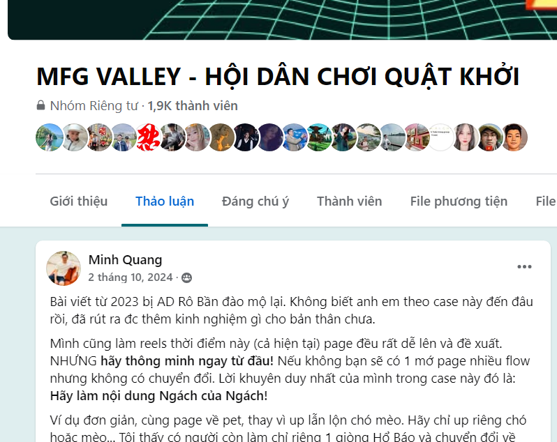 Ví dụ đơn giản, cùng page về pet, thay vì up lẫn lộn chó mèo. Hãy chỉ up riêng chó hoặc mèo… Tôi thấy có người còn làm chỉ riêng 1 giòng Hổ Báo và chuyển đổi về web rất tốt.