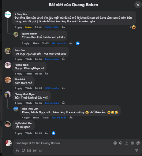 Nguyên nhân của cuộc cãi vã được cho là do bạn gái anh đang trong chiến dịch livestream bán hàng quan trọng . Nhưng trang Facebook cá nhân lại tụt tương tác nghiêm trọng.