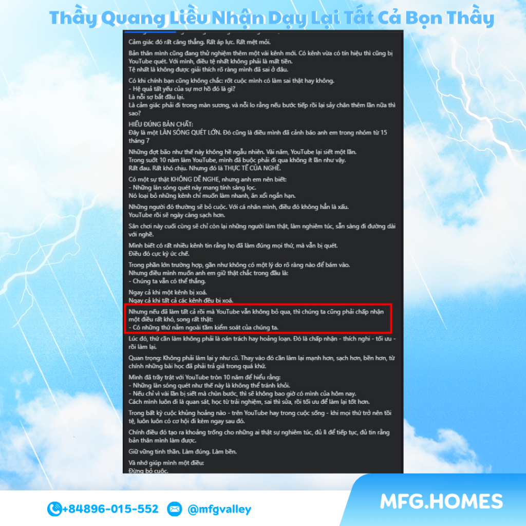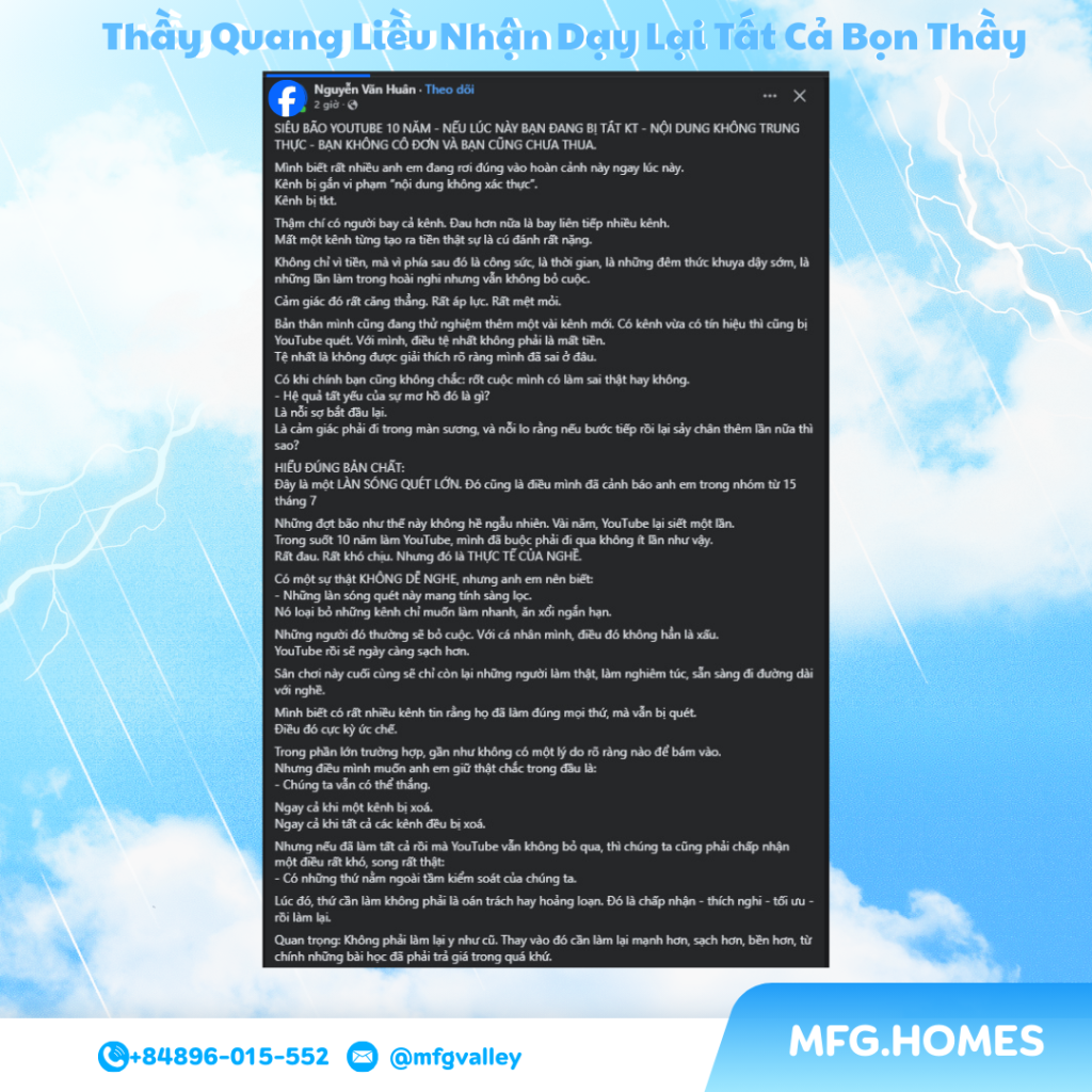 Anh không làm youtube nữa . Mỗi người mỗi duyên . Nhưng đối với Quang Liều tôi . Youtube nó bó hẹp trong suy nghĩ .
