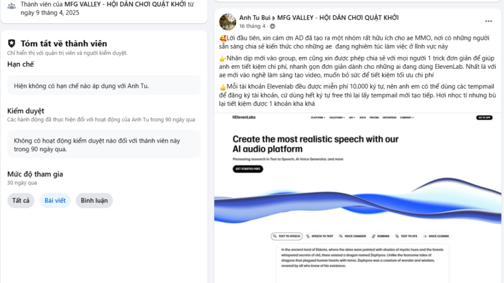 Nhân dịp mới vào group, em cũng xin được phép chia sẻ với mọi người 1 trick đơn giản để giúp anh em tiết kiệm chi phí, nhanh gọn đơn giản dành cho những ai đang dùng ElevenLab. Nhất là với ae mới vào nghề làm sáng tạo video, muốn bỏ sức để tiết kiệm tối ưu chi phí