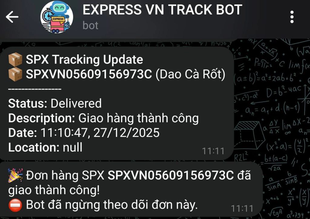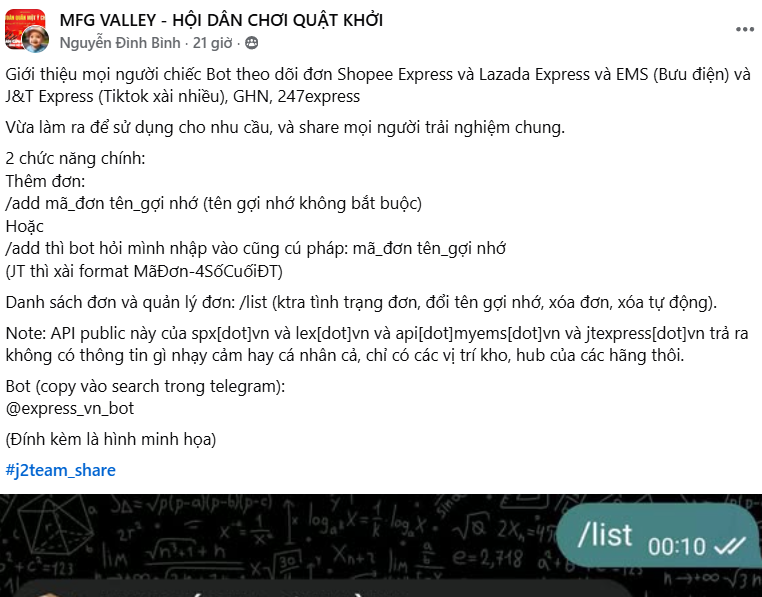 Giới thiệu mọi người chiếc Bot theo dõi đơn Shopee Express và Lazada Express và EMS (Bưu điện) và J&T Express (Tiktok xài nhiều), GHN, 247express