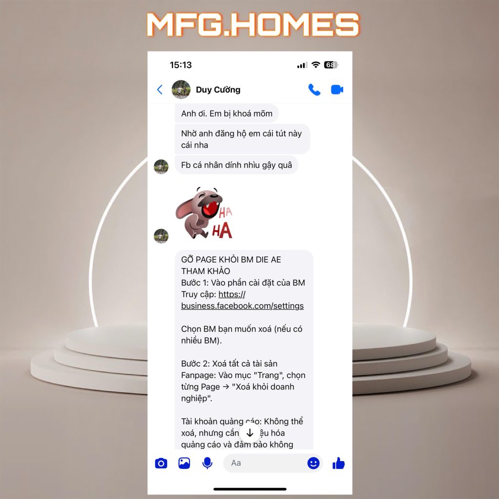 Fanpage: Vào mục “Trang”, chọn từng Page → “Xoá khỏi doanh nghiệp”.