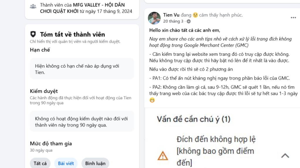 Nay em share cho các anh tips nhỏ về cách xử lý lỗi trang đích không hoạt động trong Google Merchant Center (GMC)