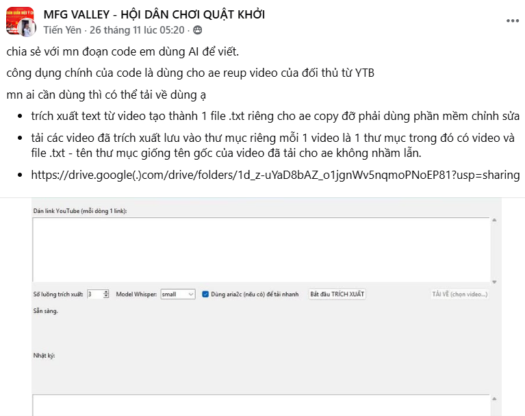 công dụng chính của code là dùng cho ae reup video của đối thủ từ YTB
