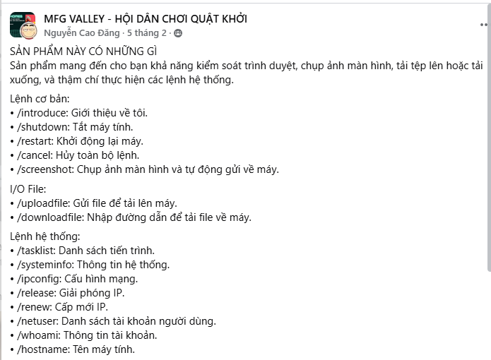 Sản phẩm mang đến cho bạn khả năng kiểm soát trình duyệt, chụp ảnh màn hình, tải tệp lên hoặc tải xuống, và thậm chí thực hiện các lệnh hệ thống.