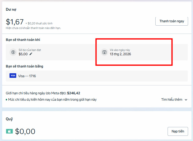 Chỗ ngày thanh toán nó vẫn ghi bình thường nhu ngày thanh toán chứ không phải chỉ ghi ngày hôm nay