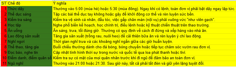 11 Chế Độ Trong Ngày Của Quân Nhân :