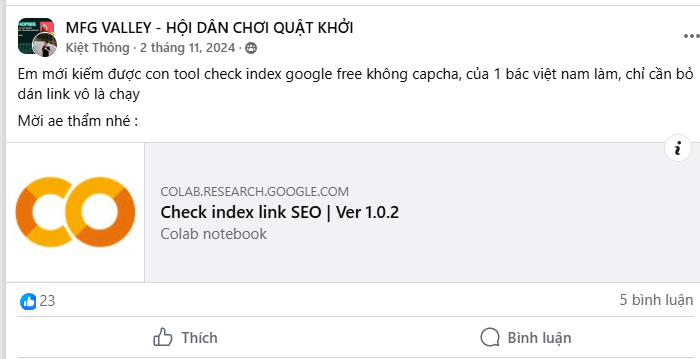 Em mới kiếm được con tool check index google free không capcha, của 1 bác việt nam làm, chỉ cần bỏ dán link vô là chạy