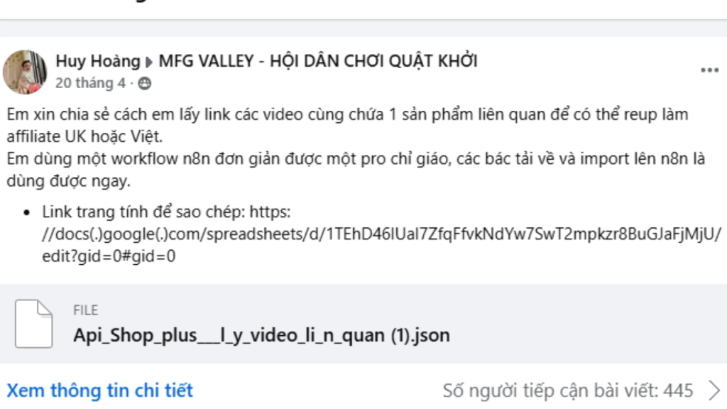 Em xin chia sẻ cách em lấy link các video cùng chứa 1 sản phẩm liên quan để có thể reup làm affiliate UK hoặc Việt.