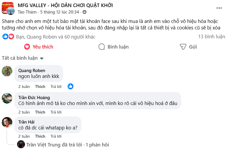 Share cho anh em một tut bảo mật tài khoản face sau khi mua là anh em vào chỗ vô hiệu hóa hoặc tưởng nhớ chọn vô hiệu hóa tài khoản, sau đó đăng nhập lại là tất cả thiết bị và cookies cũ sẽ bị xóa