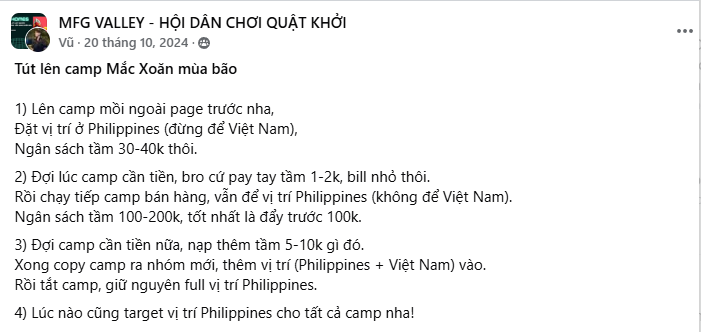 4) Lúc nào cũng target vị trí Philippines cho tất cả camp nha!