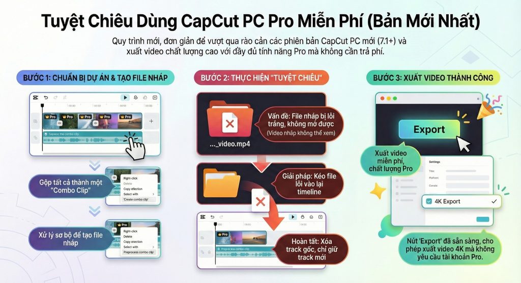 Tuyệt Chiêu Dùng Capcut PC Pro Miễn Phí 100% trên phiên bản mới nhất với 3 bước đơn giản