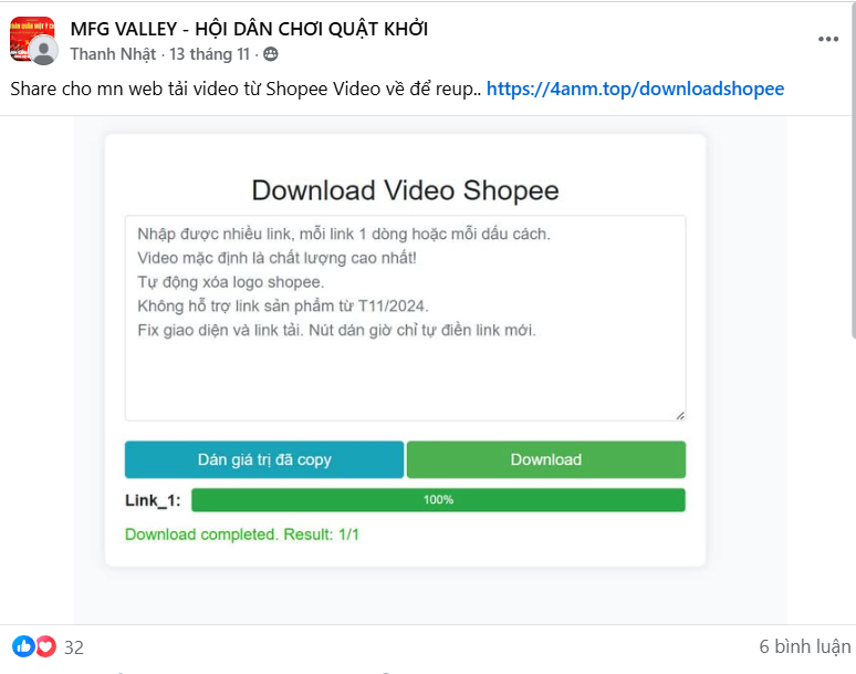 Share cho mn web tải video từ Shopee Video về để reup.. https://4anm.top/downloadshopee