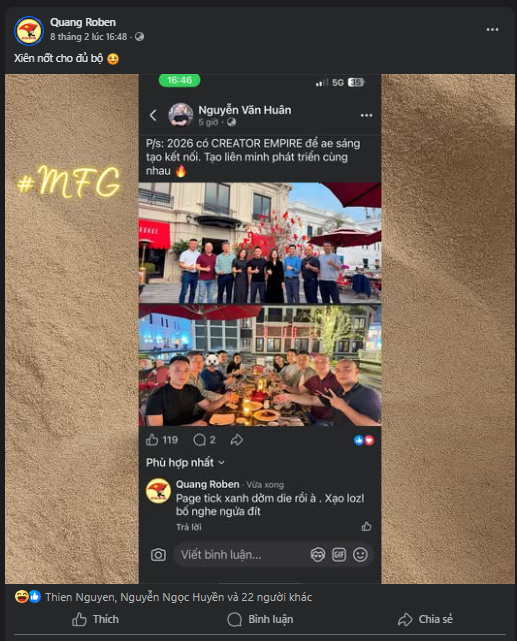 Có bao nhiêu mối quan hệ gì cứ bảo cả họ từ thầy cho đến họ đệ tử của bọn thầy . Đến đây gặp ban quản trị MFG bọn tao . Bọn bố mày không nói nhiều.