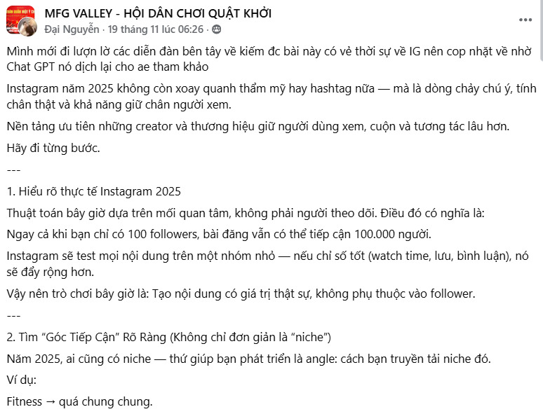 Mình mới đi lượn lờ các diễn đàn bên tây về kiếm đc bài này có vẻ thời sự về IG nên cop nhặt về nhờ Chat GPT nó dịch lại cho ae tham khảo
